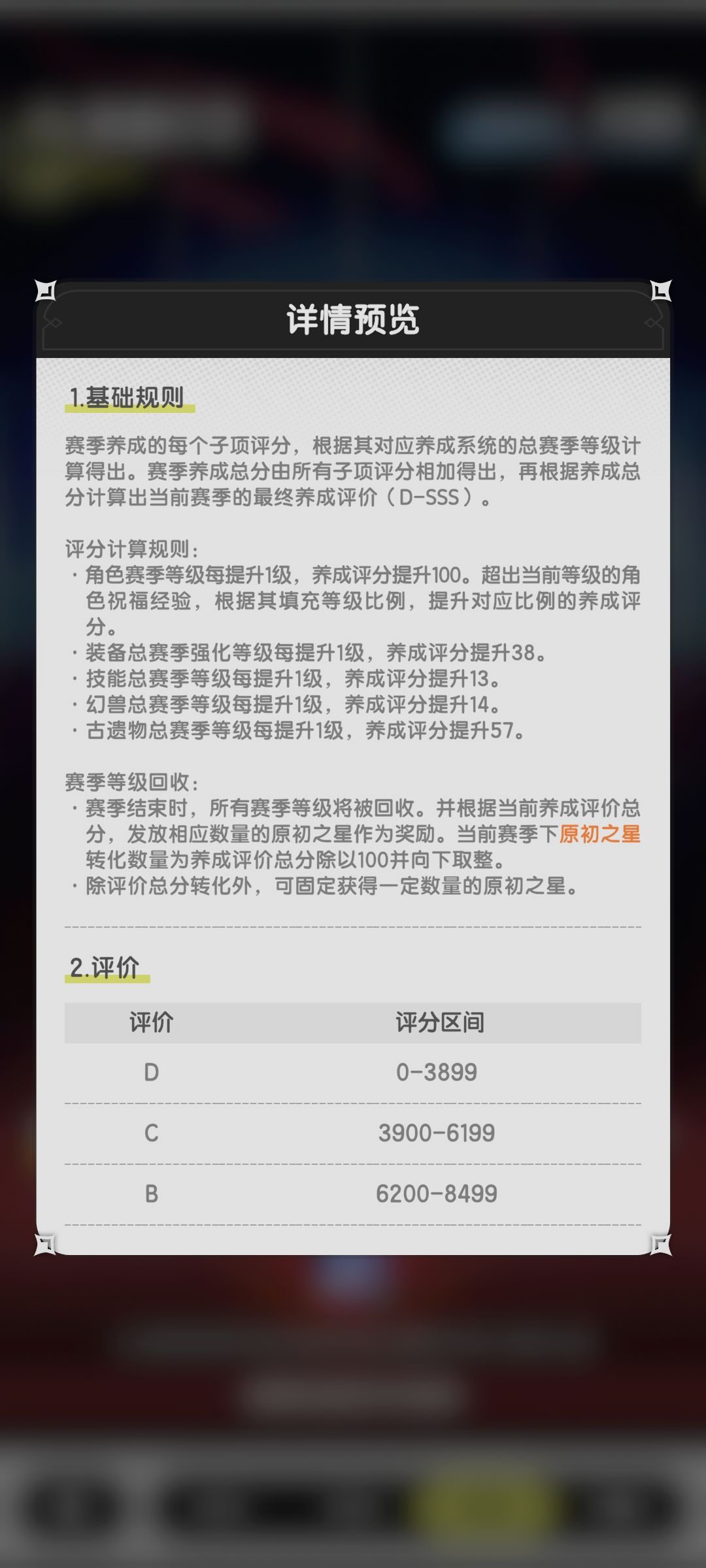 这篇攻略会帮助大家精确计算出自己的赛季养成评分以及如果想拿更高档次的奖励,需要补多少素材。