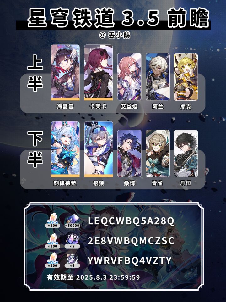 为你送上【星穹铁道3.5】前瞻兑换码~
