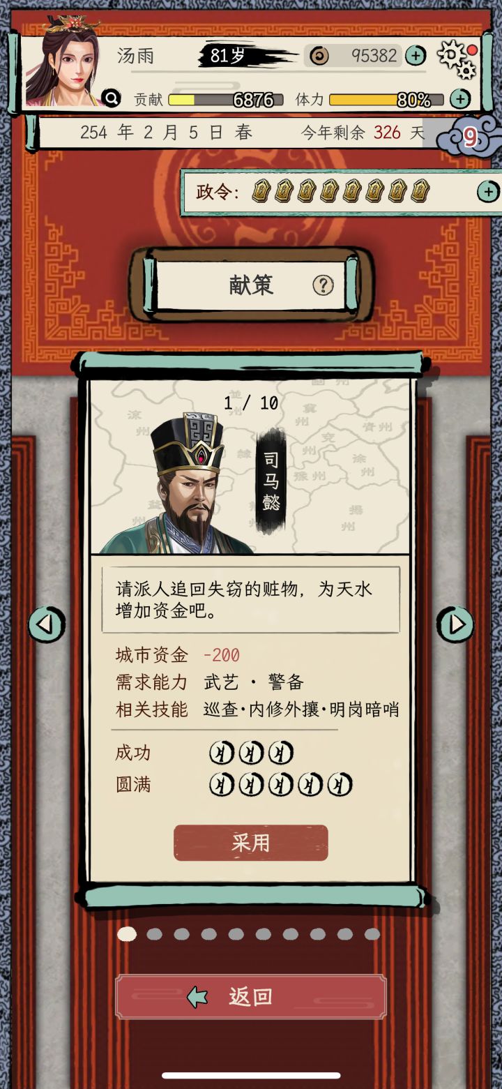 2.游戏分三个阶段,个人 太守 君王 玩法不一样