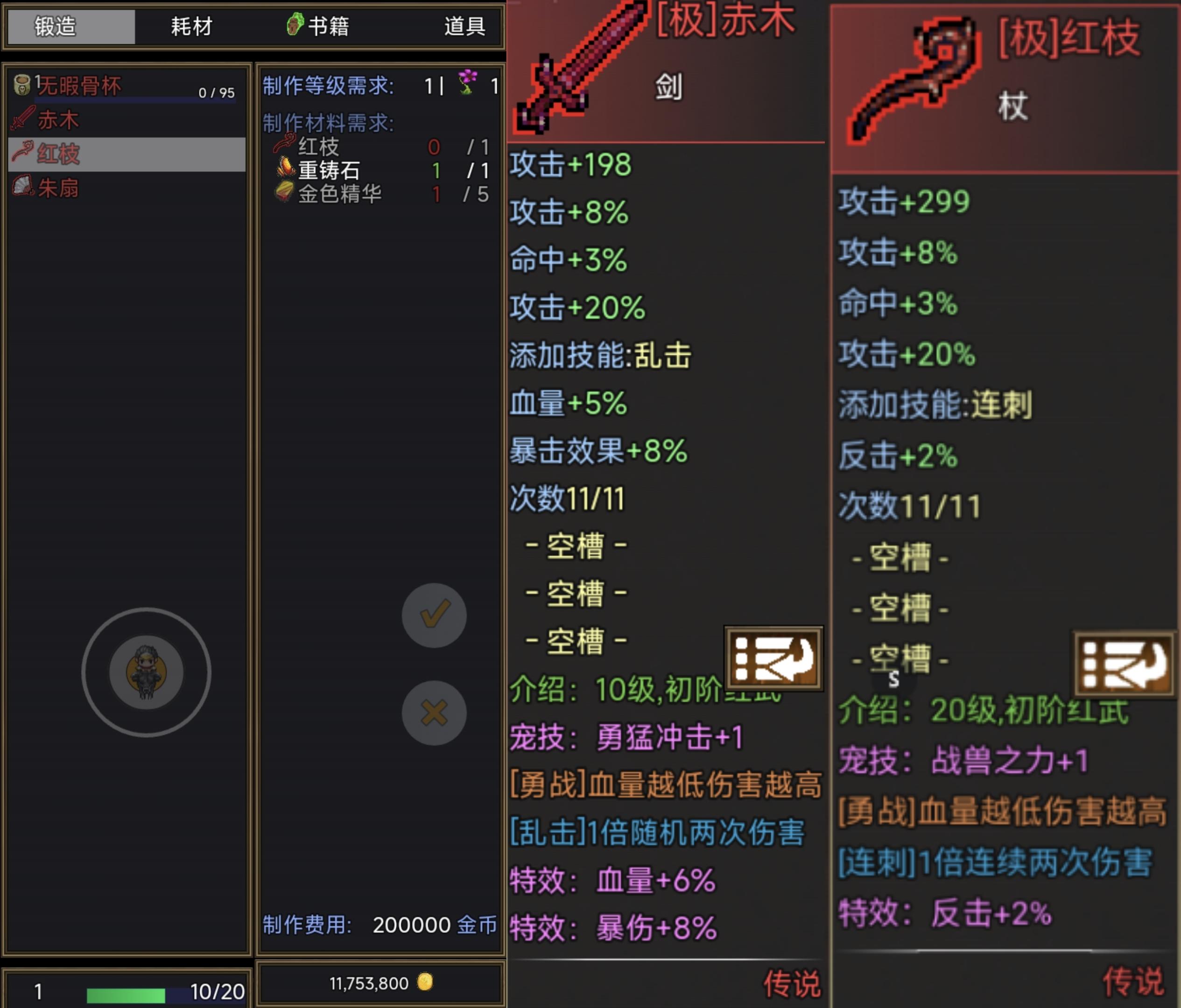 (2)10级秘地副本:刷取携带乱击/汲血/技能的武器,佩戴加成对应技能50%伤害的赤色角,可以做到2.4倍系数,无cd无蓝耗技能释放,同时刷取更换前缀更好的腰带、赤色角、武器