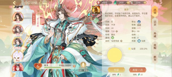 三号选手,仙官,青绿为底,太极为饰,仙人轻掐仙诀,仙丹挥手即成。
