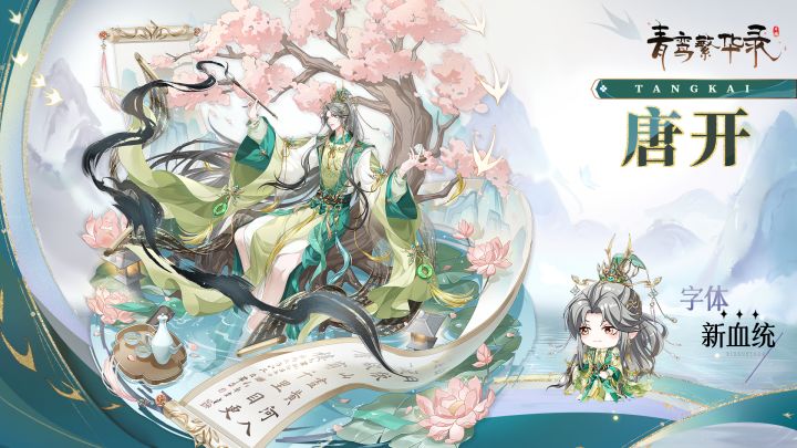 二号选手,字体,疑似借鉴某同姓书法家,风流浪漫,潇洒自傲,背靠树花尽绽,提笔作画题字。