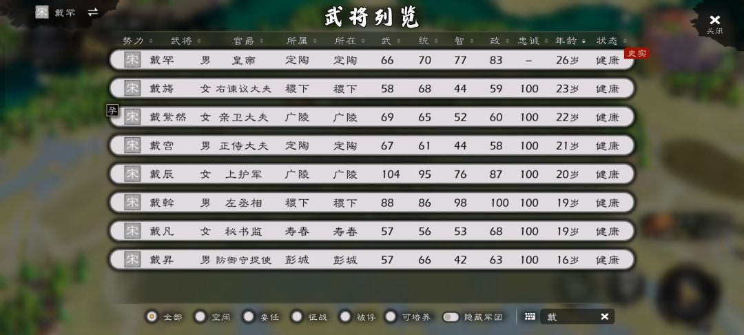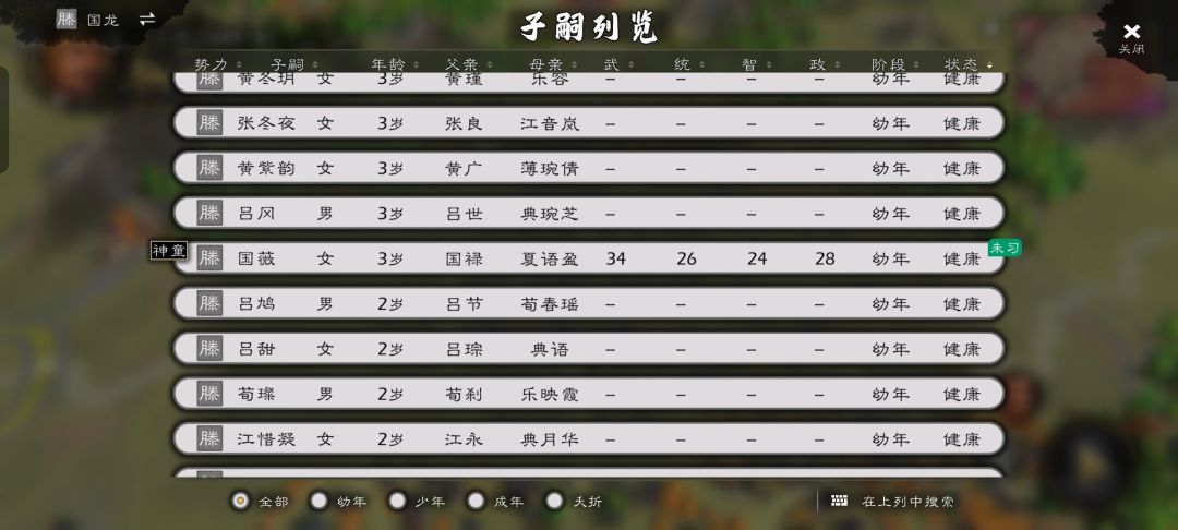 有时游戏玩到后面,电脑势力的小君主明明有三个老婆但不会生子时,你可以看看那三个老婆多大了,很有可能是前朝留下的99+岁的未婚大龄剩女。