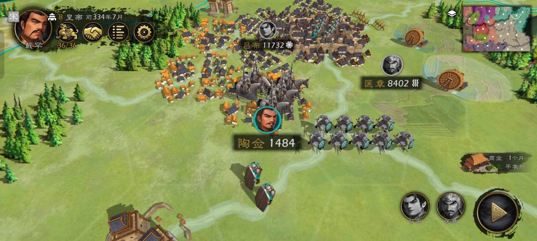 另外关于这类三国背景的策略类游戏我的看法是其各类数值和设定都应该是为增加玩家的代入感而考量,游戏不看背景只看数值的话不久就会失去其原本的乐趣,游戏里有些设定看似无用(国号,子嗣,人际关系等等),实则是为了增加游玩时的整体感觉。如果只看数值的话,这个游戏理论上是可以出兵一回合速通(战国剧本,无论难度)的。