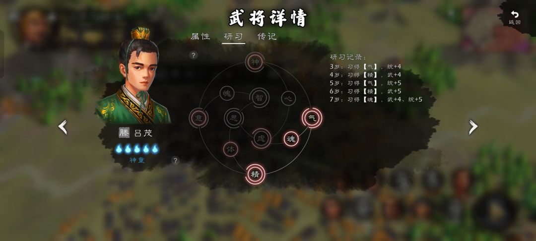 普通子嗣在5岁(神童为3岁)开始有四维属性,并且可以点研习加点,