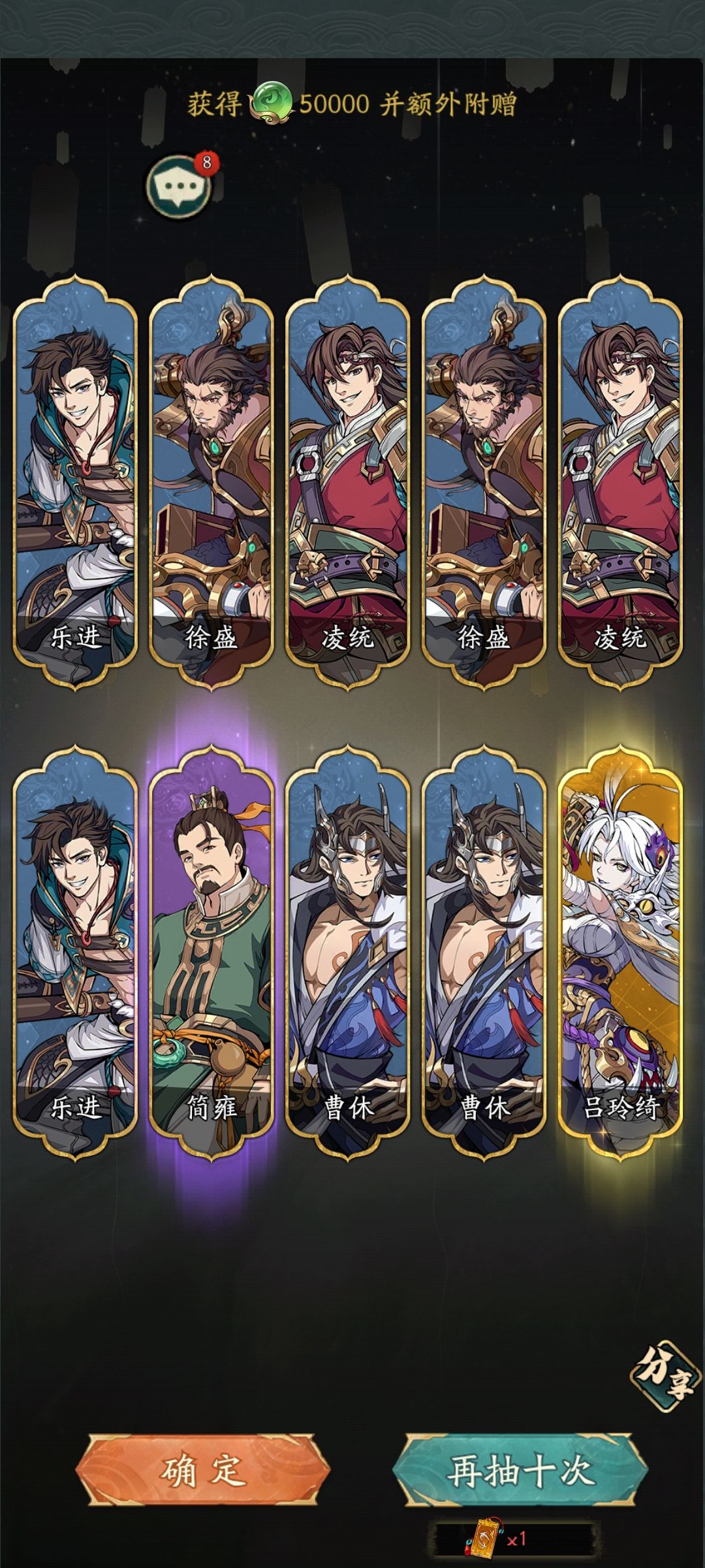 终于上阵6个无双了,也是达成一个小目标了。