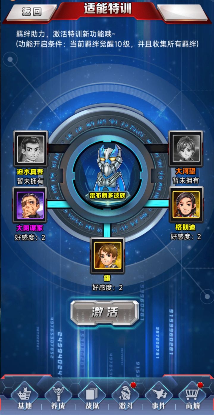 特训需要的羁绊:迫水真吾、大阴谋家、大河望、格朗迪、雷