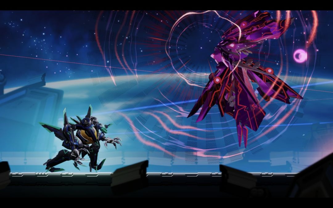 不过地图中的怪物种类其实并不算多,而且比较讨厌的是敌人有碰撞伤害。尤其是在跑酷时遇到一些空中的怪物时,想要不受伤其实需要一定的操作技巧,更别说地图上还有各种陷阱或者激光等等。当然如果变身成机甲,则可以规避一些伤害,例如地刺和蒸汽等等。但是召唤机甲需要消耗能量,且在一些地形狭窄的地方无法召唤。