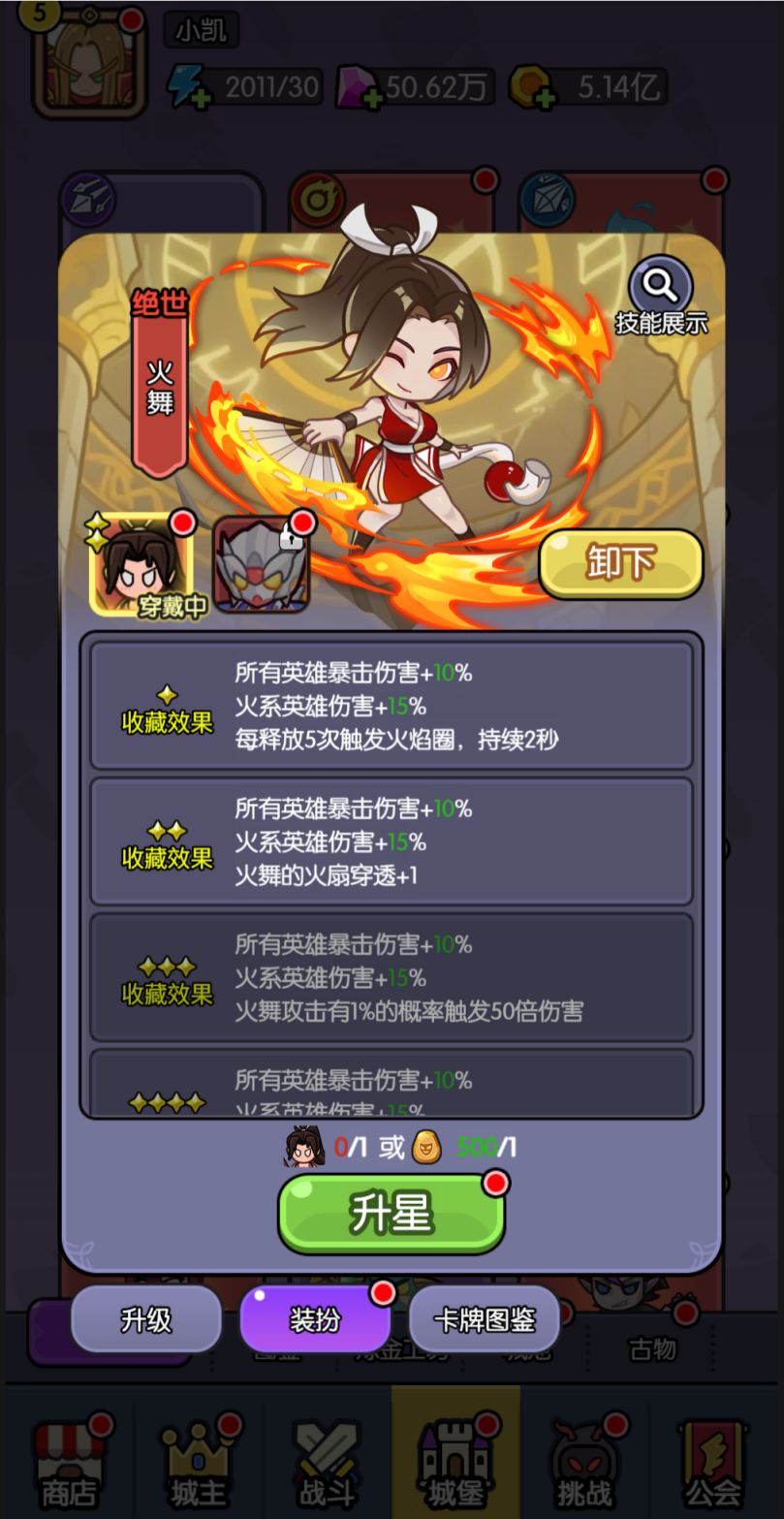 *具体的星级提升效果届时请城主大大在游戏内查看。