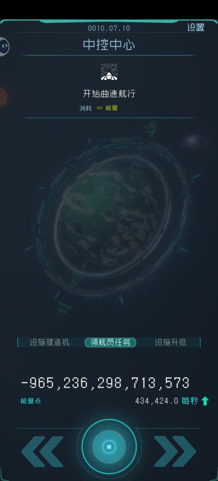 开始曲速航行所需要的能量为0,但如果此时你的能量小于0则无法进行。建议在进行此项任务后,在逐光系统进行倒计时的时候,将时间改回自动