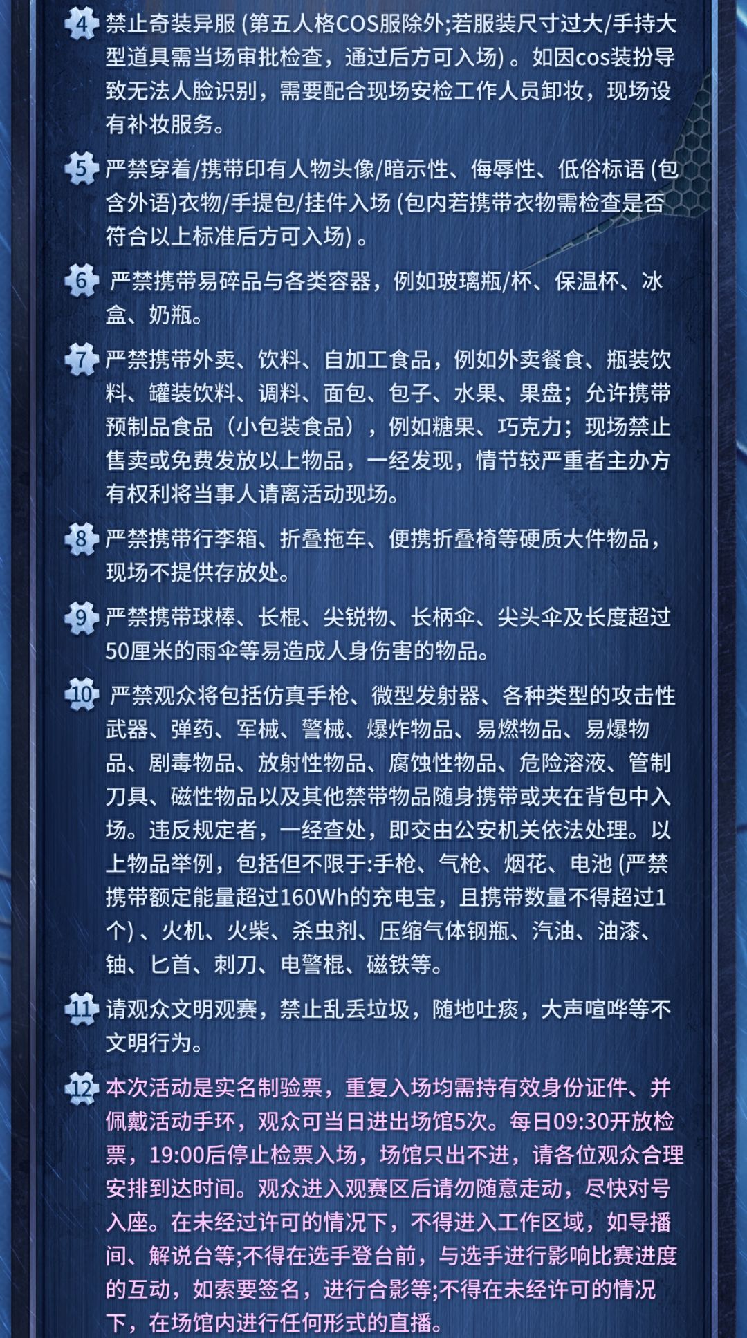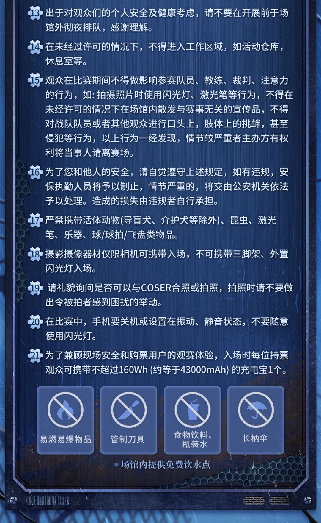 温馨提示:*现场符合[一票一证]的购票规则。个人实体身份证件作为唯一入场凭证,用户进场需人证合一,请各位观众妥善保管。2025IVL夏季赛总决赛,除自然灾害等不可抗力原因,导致演出推迟、延时或无法继续进行,恕不退票,请勿轻信黄牛!