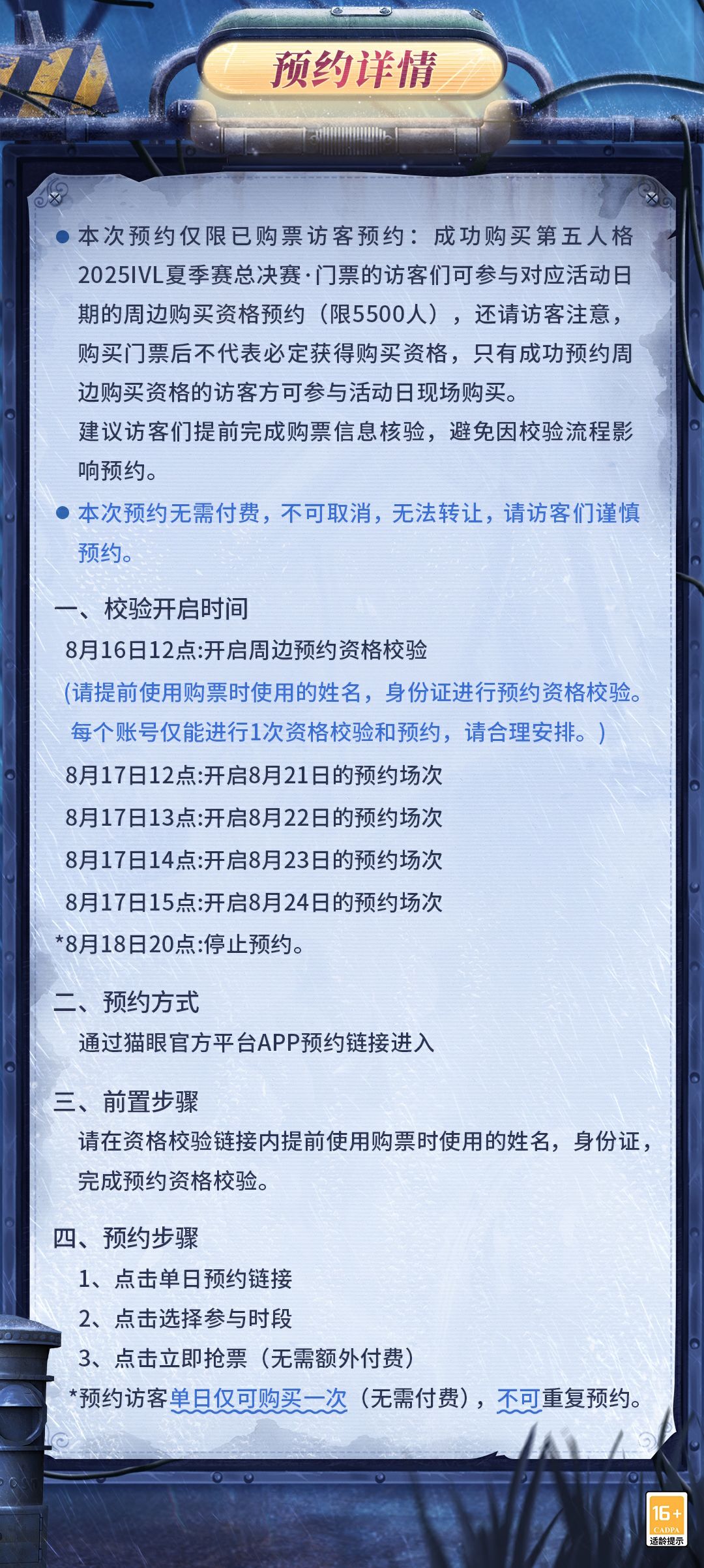 比赛时间:2025年8月21日-8月24日(活动检票时间:9:30 AM)