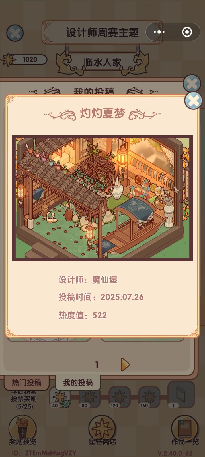 踏入“灼灼夏梦”,仿若闯入一场温柔旧梦。古雅建筑错落,水车、花灯与小船相映成趣,细节里藏着对“临水人家”的诗意诠释,把夏日闲适与水乡灵韵,都揉进这方小天地,让玩家沉浸式触摸生活的浪漫纹理,是创意与主题融合的生动范例 。