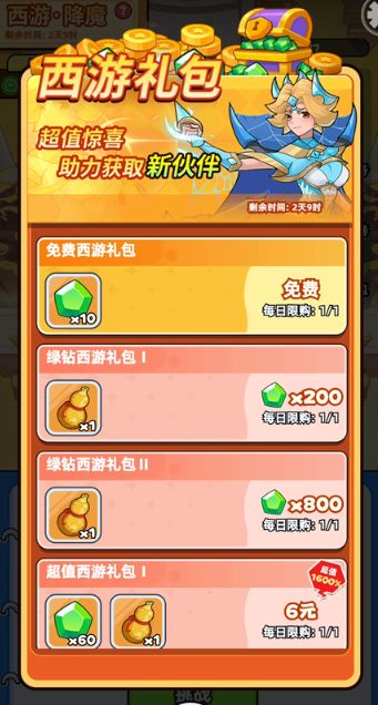 1、每日6元礼包(稳定获取葫芦);