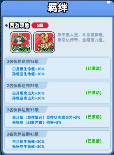 上阵全新西游伙伴解锁羁绊,可获得属性大幅度加成;