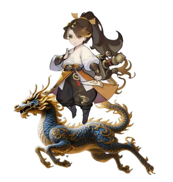 青鳞金鬃破云来,素衣道人踏脊背。