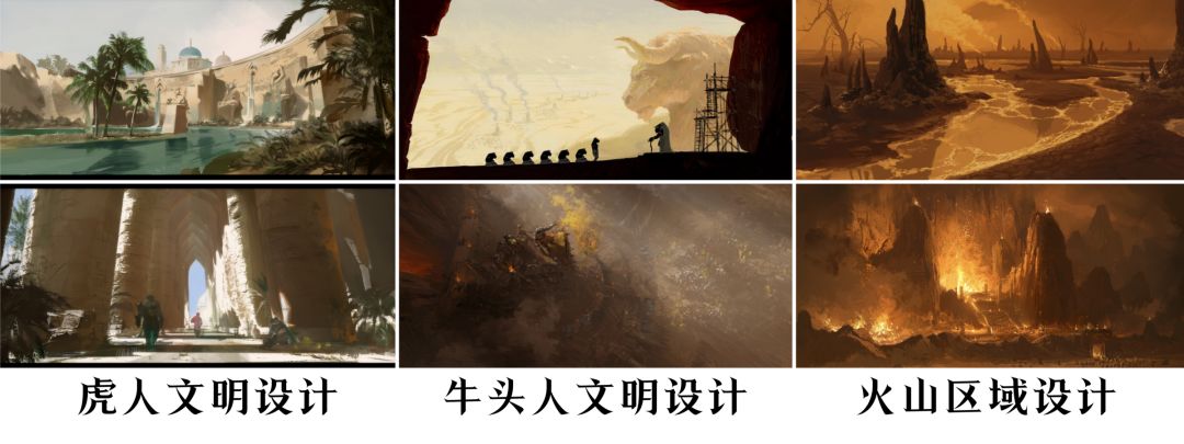 其实在最初设计整个主线时,我们就已经确定要制作沙漠地图了。作为埃达西亚大陆最偏远的区域,沙漠的地貌与其他所有地图的差异都非常大。无论是从视觉效果还是从游玩体验来说,沙漠都可以带来一些和已放出地图截然不同的感受。此外,我们也希望能让旅者们了解和参与到更多种族的故事里。像牛头人和蜥蜴人种族,其实是有不少英雄从最初就可以被召唤的,但是因为设定是生活在沙漠里,他们的故事一直没能进入大家的视线,这对我们来说非常可惜。其实每个种族都有做完整的背景设定,是他们令这个世界更真实。因此,在这次的沙漠地图里,我们带来了3个种族之间的爱恨情仇,之后也会尽可能让更多的种族“抛头露面”。沙漠地图我们整体参考了两河流域的风土人情,像虎人种族主要的文化来源大约是9世纪的萨珊帝国,某些波斯文明的特点在虎人的建筑、服饰和习俗设计上都有所体现。而热那度赫沙漠里那条绵延的圣拉玛兰河,其水文特征则主要取材于尼罗河。沙漠与河流的交融和冲突,在故事中则体现为虎人和牛头人种族千年的恩怨。