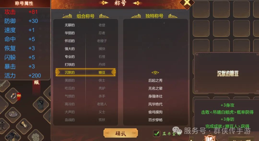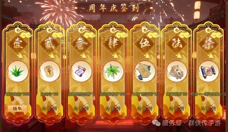 《群侠传》好久不见的签到活动又开启了!本次签到为各位侠士带来了一些不一样的东西~锵锵~周年限定独特称号<一周年庆典>。称号属性:攻击+6、防御+6