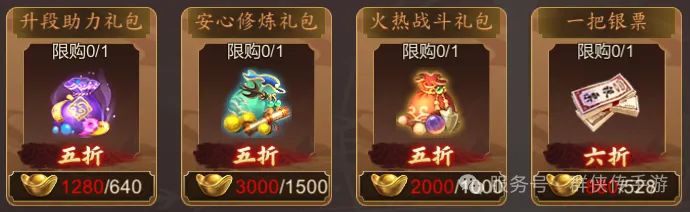 火热战斗礼包:礼包内含劣质金玉水*2、劣质神目丹*2、劣质逍遥散*2、劣质暴力丸*2、弱化极乐丹*2(劣质药品属性为正常效果的一半,生效时长不变)