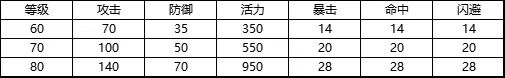 因等级过多,故每级提升效果不一一展示,仅展示提升门派天赋至60、70、80级时的属性收益。