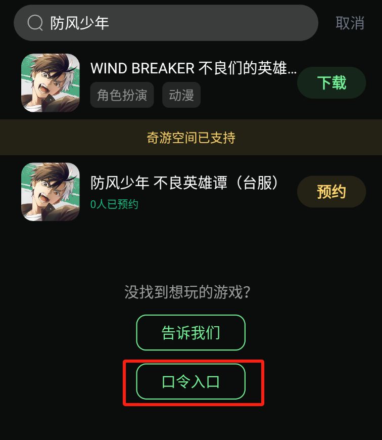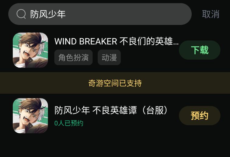 第二步:奇游内搜索【防风少年】点击预约! 也可以下载日服提前体验游戏!