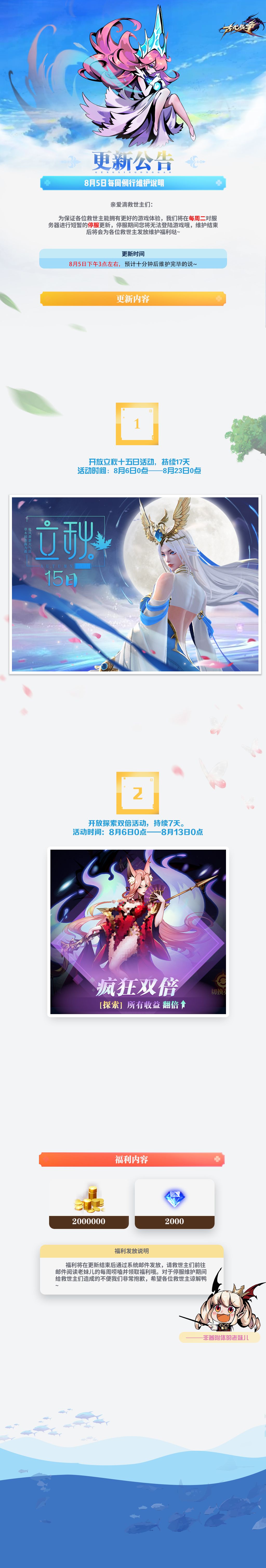 【更新公告】8月5日每周例行维护说明 • ︡ᯅ•︠