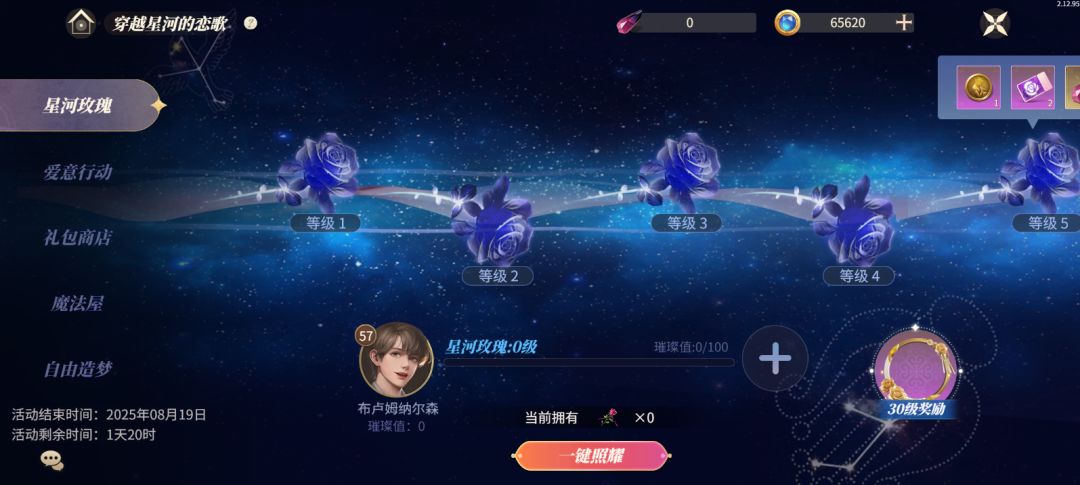 ①璀璨值即星河玫瑰的经验值,星河玫瑰种子可以通过爱意行动(活动任务)、礼包商店等获取,然后在农场种植获取。