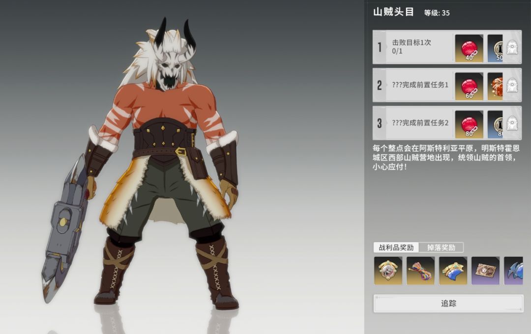 首领奖励掉落的固定奖励:大量的生体元经验,大量游戏内货币,40级紫色武器,40级紫色头盔,40级紫色项链,制作材料,残缺平原晶片,柔软兽毛。