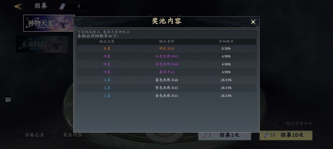 在主页面抽奖“神武天工”里概率获得