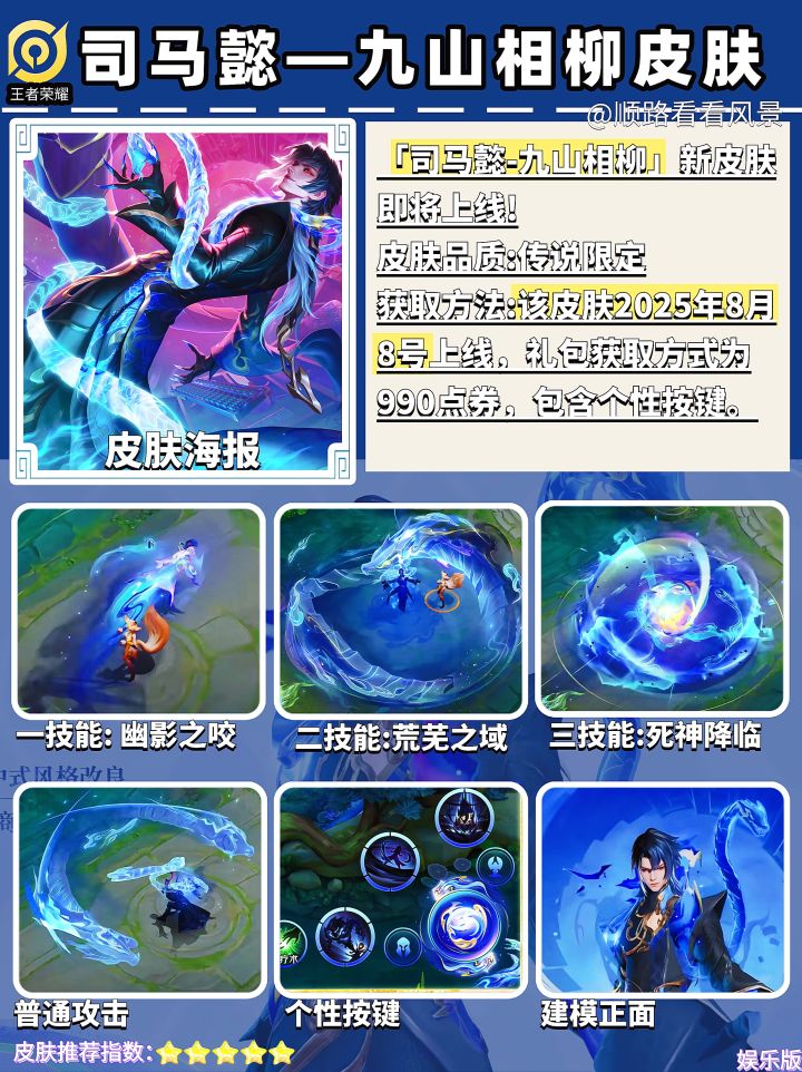 首先先恭喜司马懿出传说皮肤,首周只需990点券即可获得新皮肤包含个性按键。
