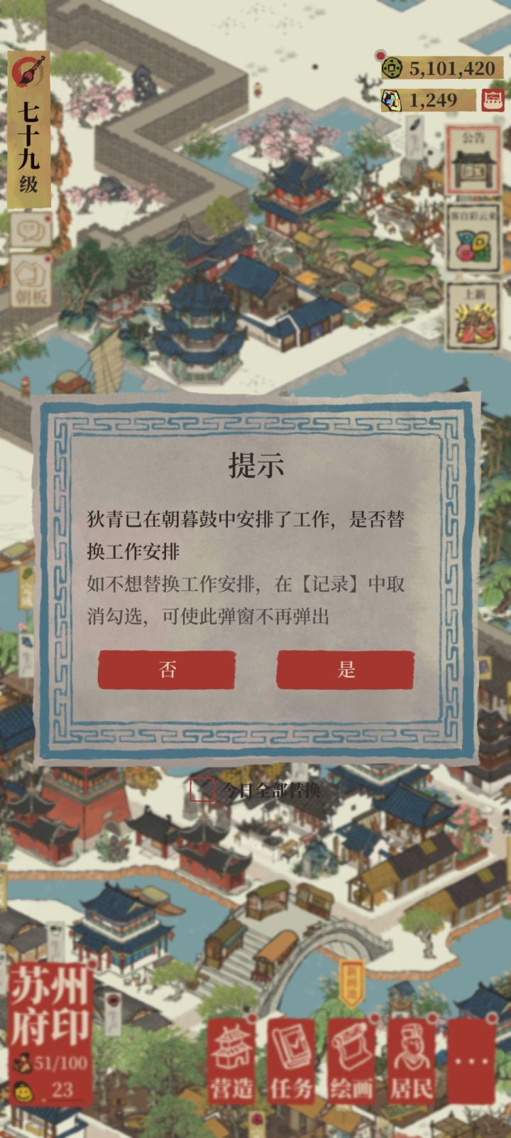 5.这是我的总结,其实我也是程序员,第一次看到这个功能第一版我是很满意了,非常喜欢,除了强制给我安排我不喜欢之外,真的希望官方能够采取我的建议,因为作为玩家现在这个朝暮鼓在我这就显得很鸡肋了,用吧,我要话很长时间去排班,之后一不小心你就给我改了,不用吧浪费了这个功能![[表情_送花]](https://img-tc.tapimg.com/market/images/68b3dc8473df915ad2b85da5efef4f56.png)