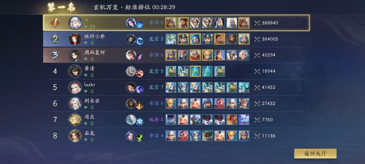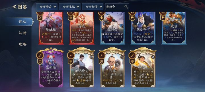 经过筛选可以搭配适合的阵容,可以看到有仙庭白卦刷钱流派(还有个隐藏的仙庭蛤蟆),还有帝国的虎侯晋升