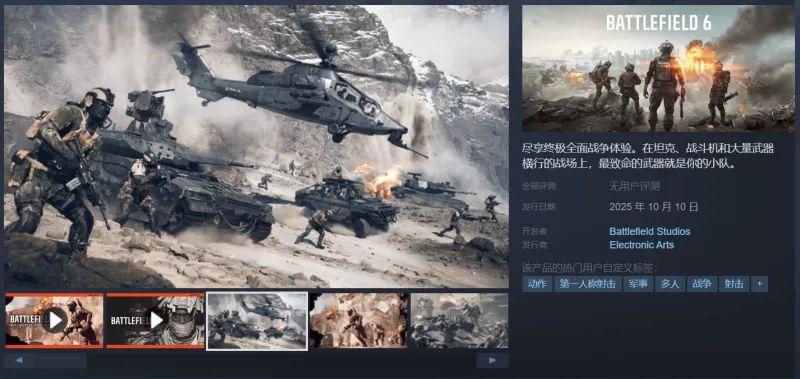 《战地风云6》Steam版本宣布无需EA启动器即可游玩,且目前游戏的需求配置也已经出来了:
