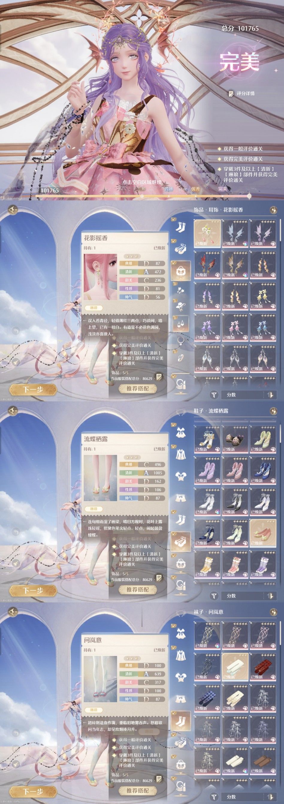 本期奇迹之冠第五关是清新 琳琅词条【p5】鞋子与耳环(星光小铺兑换)袜子是丹青屿宝箱获得设计图 从而做出来的