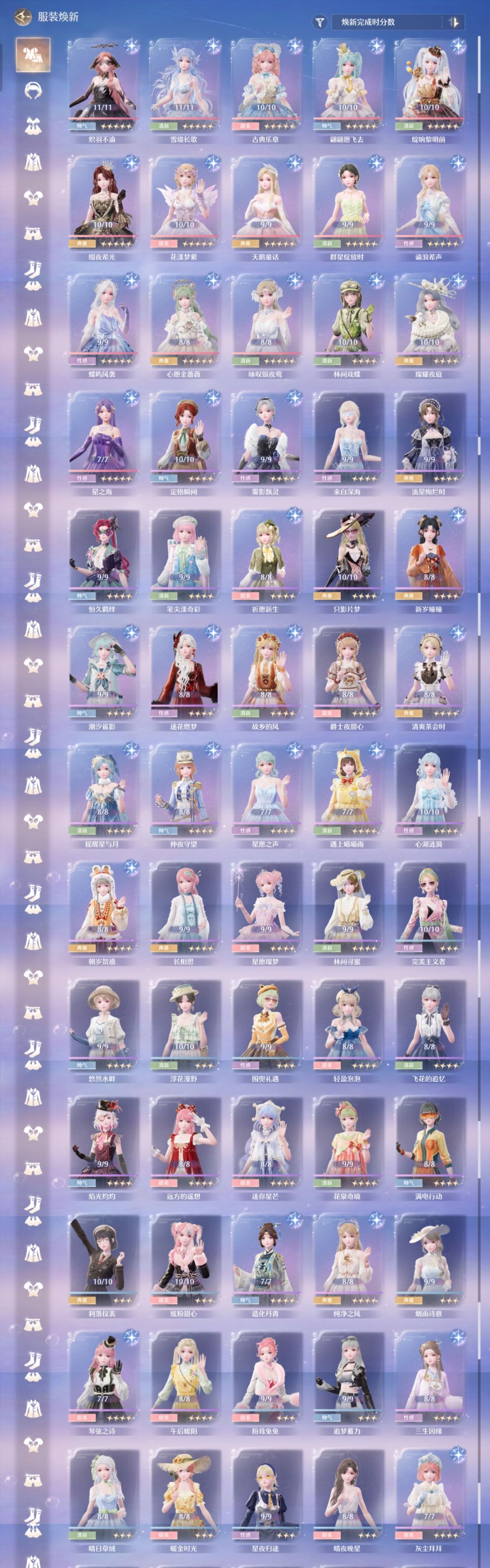 性感——缘缘长相念【灵猫套】>蝶屿风袭【蝴蝶套】>谕浪希声【普池浪花套】>梦泽流光【梦露套】>星之海