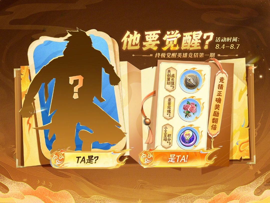 首次参与竞猜即可领取亲密玫瑰*1+共创策划成长值*5+小王互动积分*5,竞猜正确还可额外获得亲密玫瑰*1+小王互动积分*5哟~