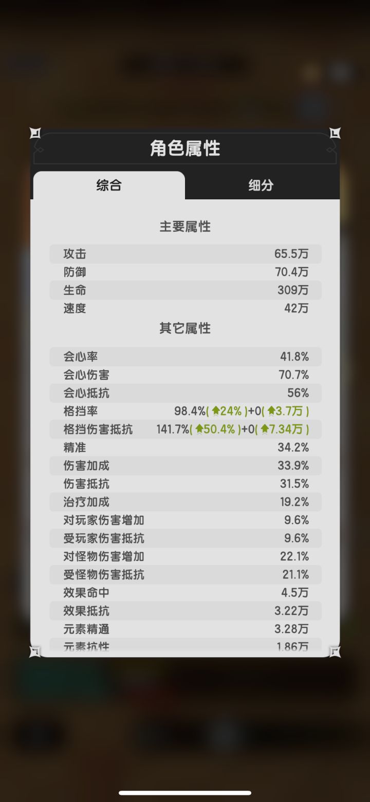 目前将军府进度,进赛季,装备也基本继承,属性如图。
