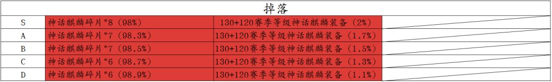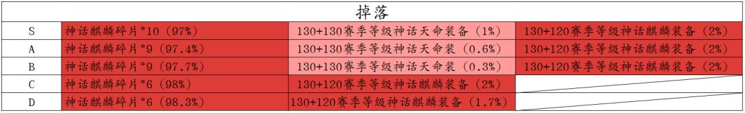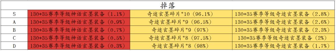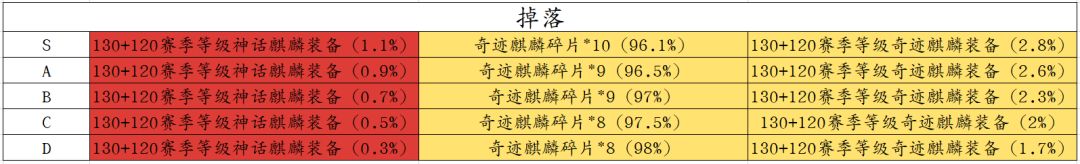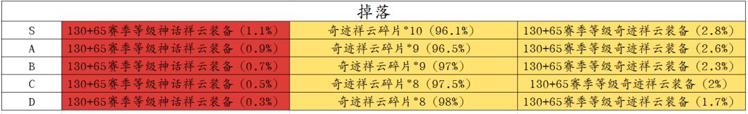 装备掉落等级:105~190(S1赛季)