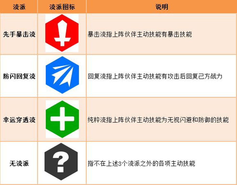 出战阵容下的4个流派百分比展示数值,是上阵伙伴中主动技能的概率之和,如:造成暴击伤害技能的发动概率之和。