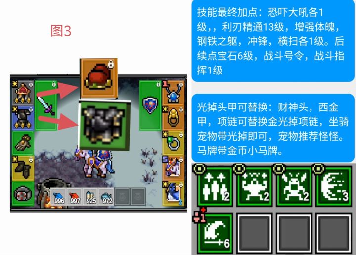 2:30级前驱魔套冲锋横扫(效率快可带光掉刷装备):配装技能见图3。(驱魔剑自修20-)