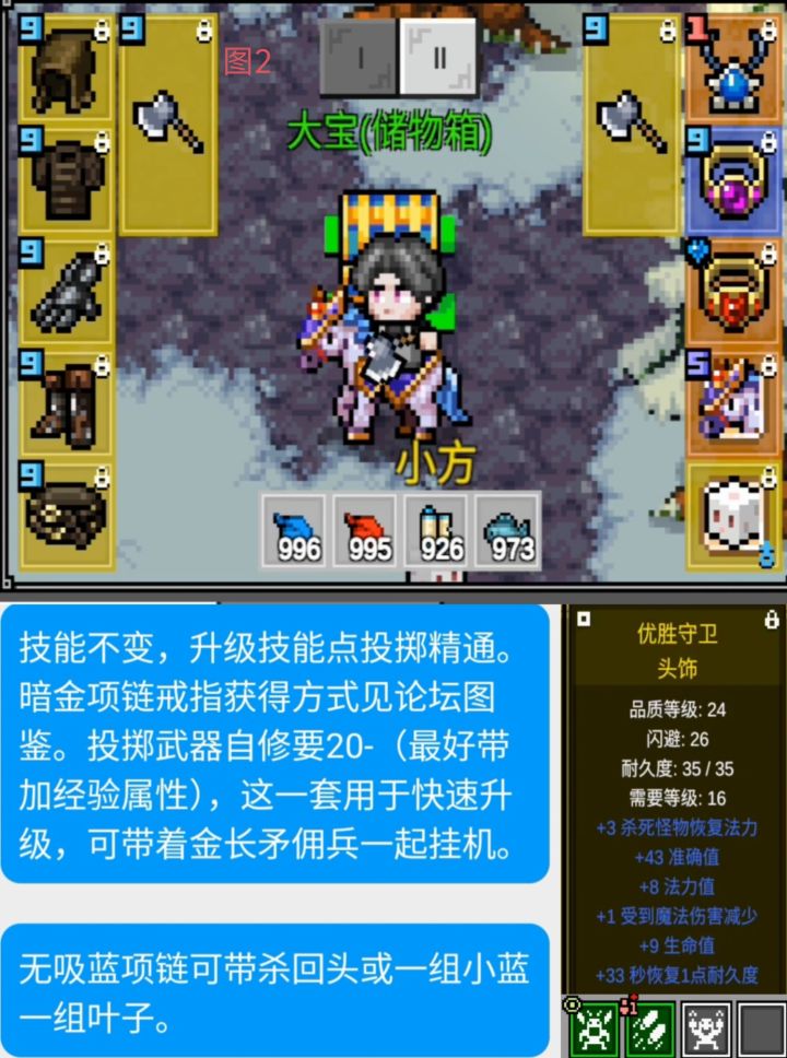 看过前两篇的兄弟应该对经验装有所了解,所以!把我们法师的一整套经验自修装备通过储物箱转给我们的新号战士。(二三幕商店可以刷新出来)。