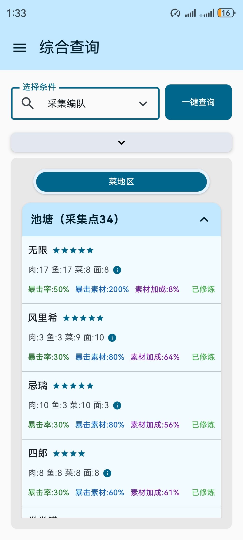 主要帮助萌新和不想自己查图鉴的玩家,基本上能做到全自动查询,可能有点小BUG,可以联系我反馈,后续大家有什么想法或建议也可以联系我或者回帖说明,会陆续添加新功能,更新可在app系统设置中获取最新安装包