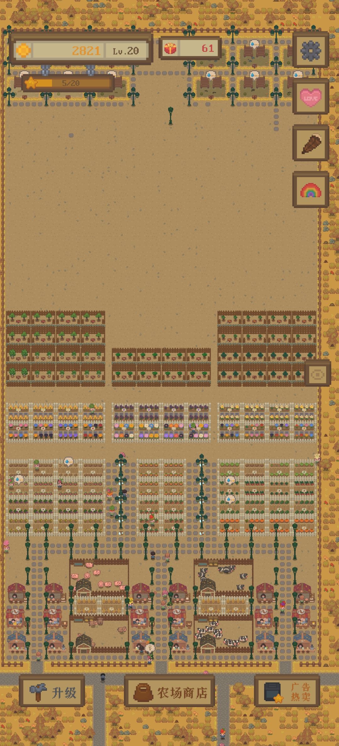和市面上大部分种菜游戏玩法相同,讲一下前期怎么快速发展升级占地,等级最高20级,范围大概就是50*100格。