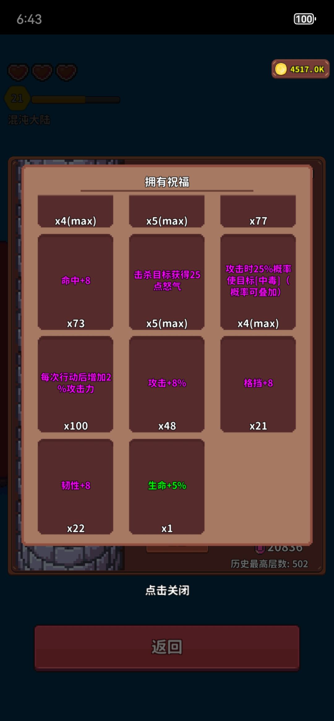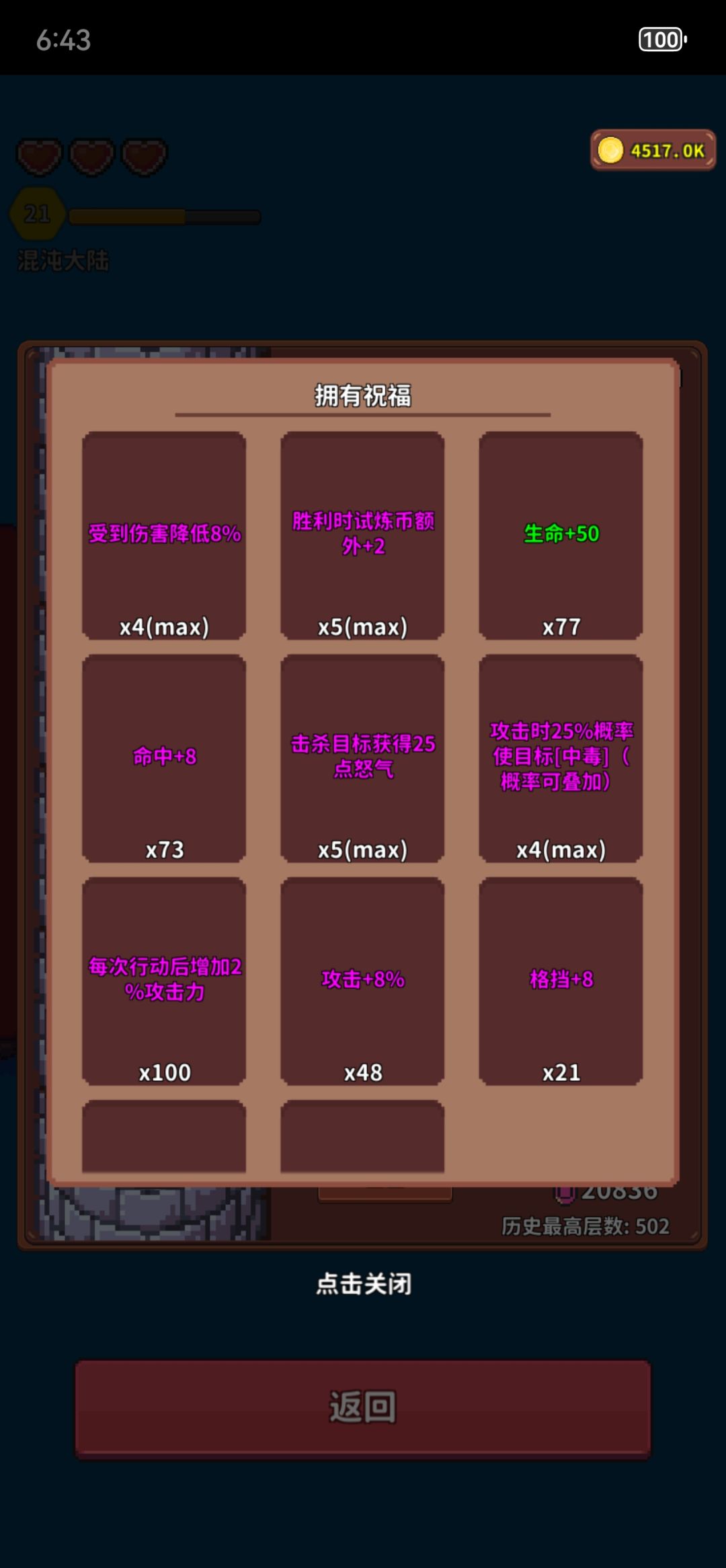 爬塔注意攒金币,如果想爬500层完成成就需要攒15000以上(想爬塔保险点就多攒点)