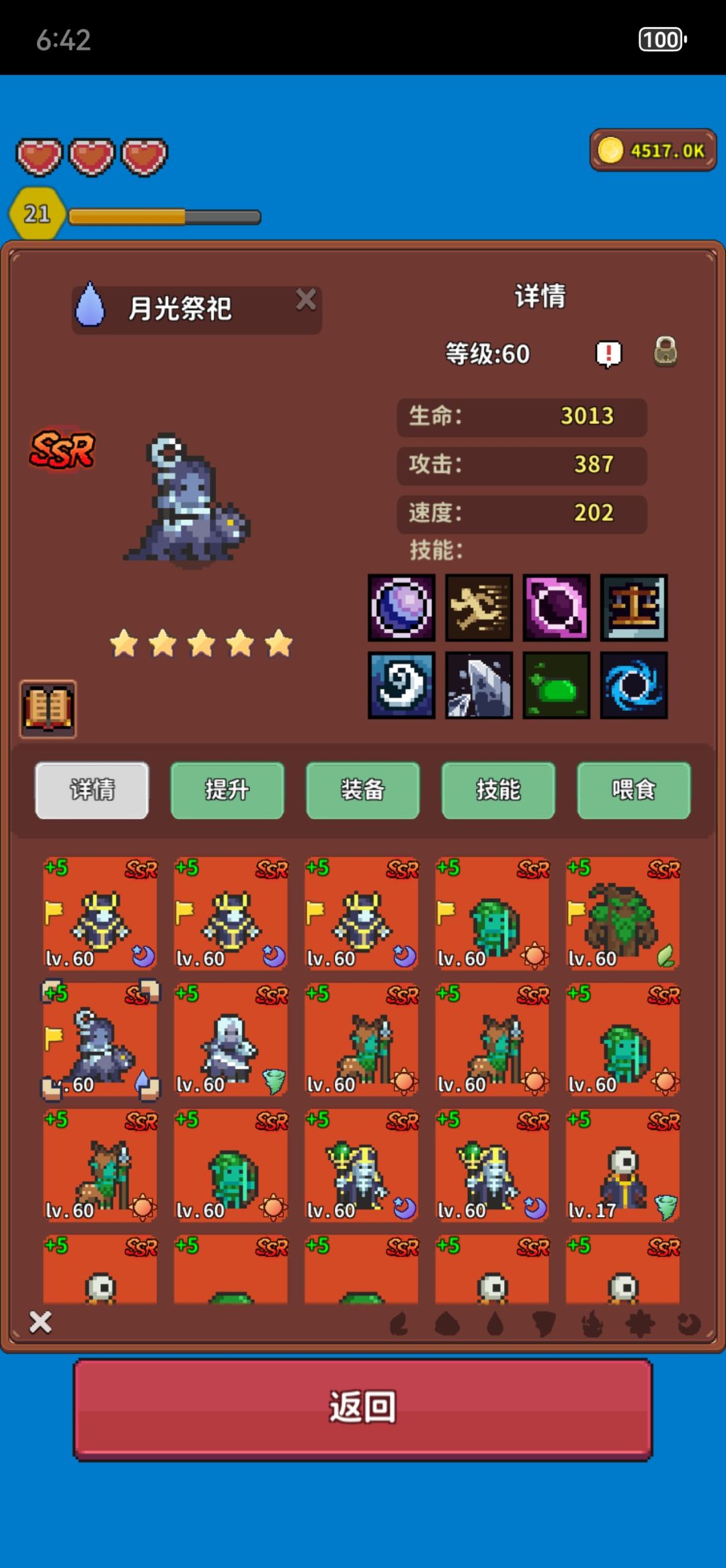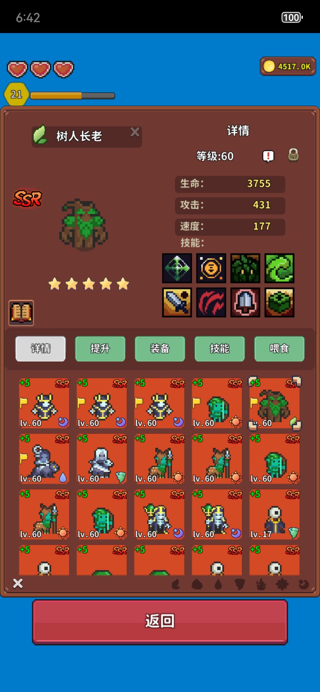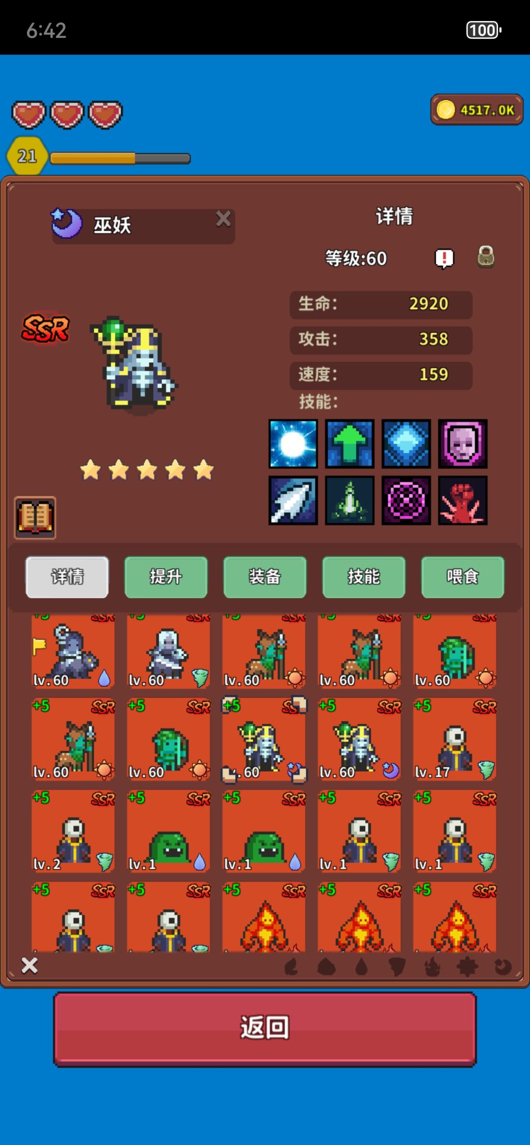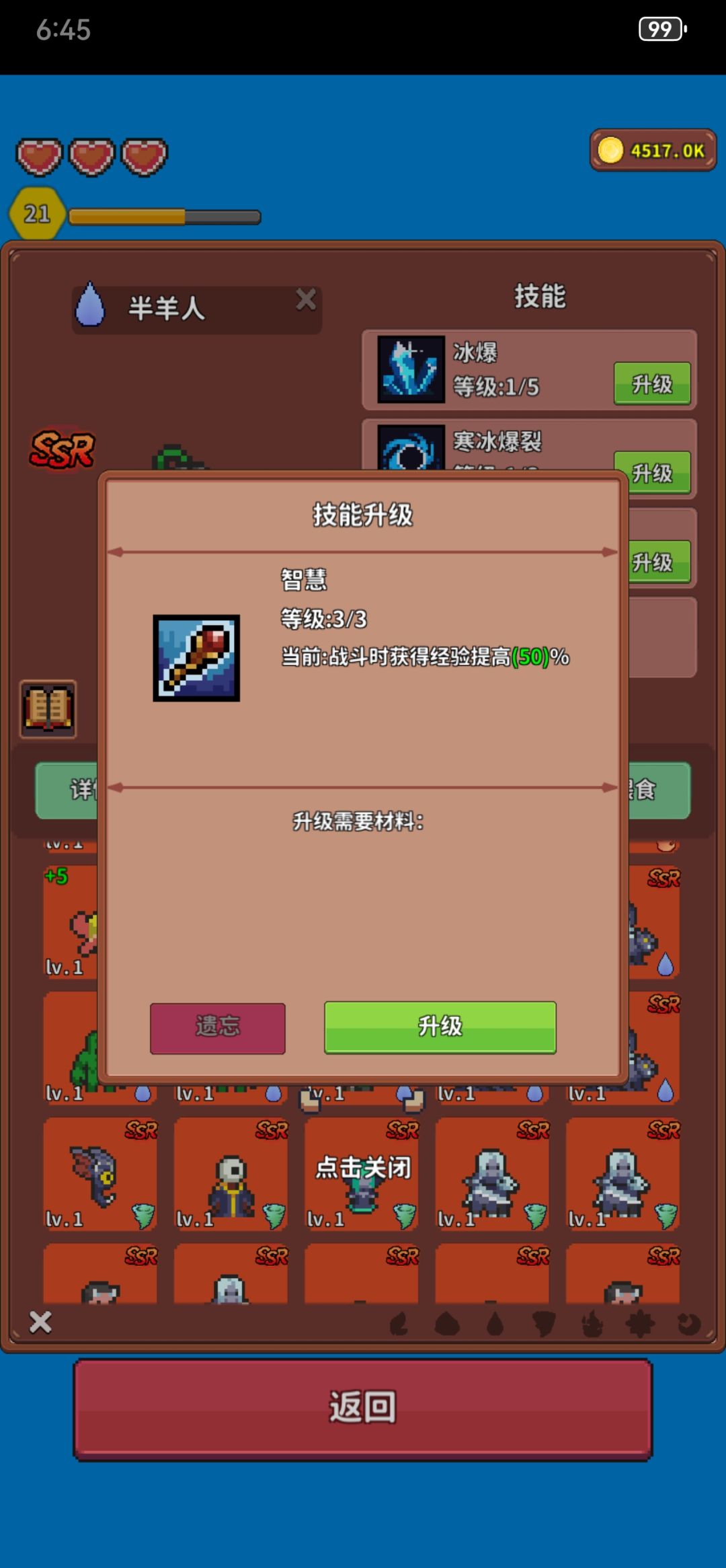 ①升级主要靠半羊人的技能智慧,SR就有智慧,智慧拉满+50额外经验。