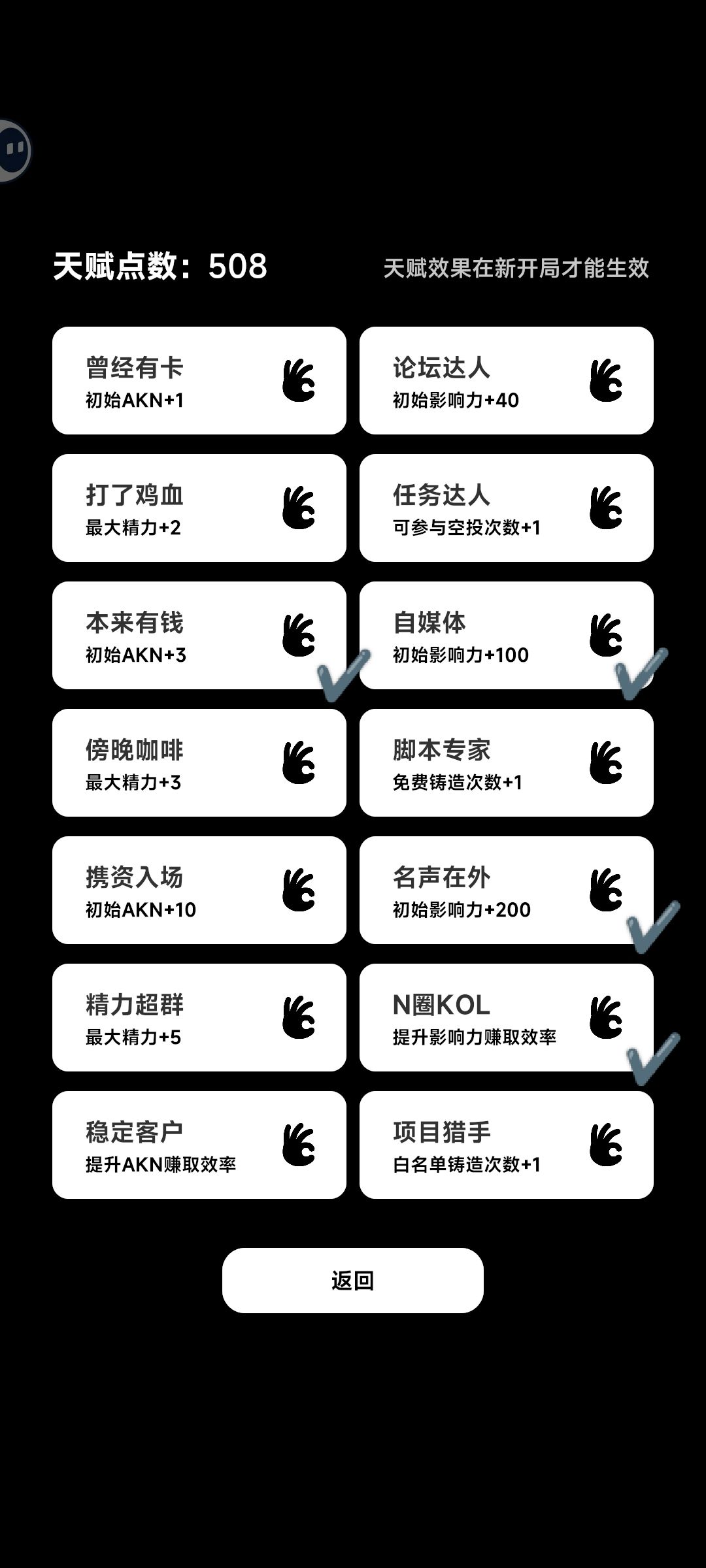 首先,你得拥有以上四个[天赋]前期很吃[影响力]和[体力]