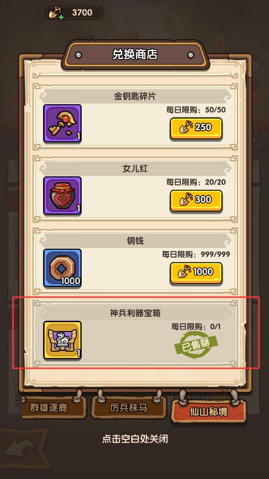 1、宝物升级:主要消耗材料需要通过仙山秘境玩法获取,每周的玩法奖励宝箱可以拿到大量(右下角)不推荐在仙山商店兑换。升级后提供对应兵种的攻击力,此部分无需上阵即可生效。