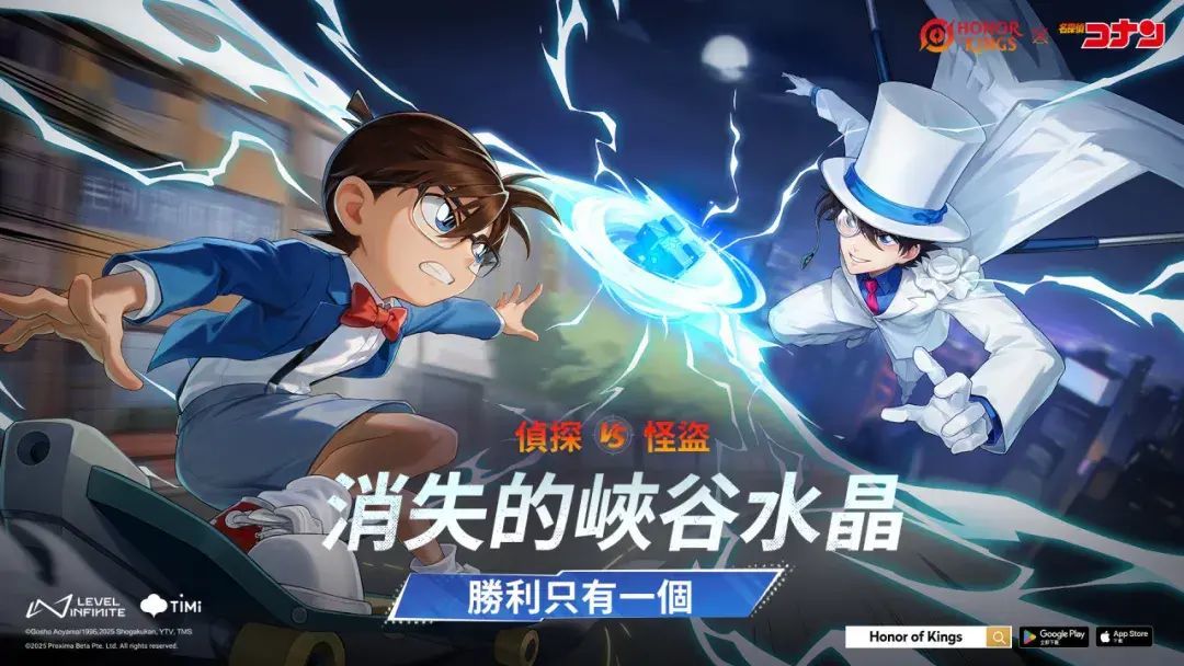 ✨Honor of Kings x 名侦探柯南联动即将上线!8月1日起,鲁班七号·江户川柯南加入活动;8月8日起,马克波罗·怪盗基德正式登场。定好闹钟,消失的峡谷水晶即将上演!