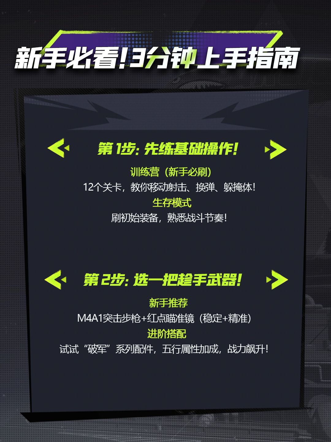1️⃣ 刷训练营练躲掩体,生存模式刷初始装