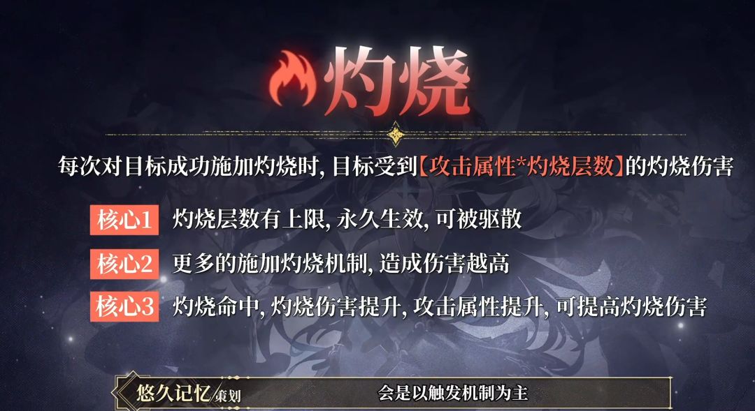 目的也是为了不同的体系能够发光发热,其中,灼烧体系在新版本中是以触发机制为主,叠伤害。